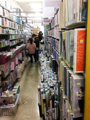 閉店したモディ店は細長い造りの店なので、棚と棚の間が狭くて多少探しずらかった。この店の特徴はなんといってもジャニーズ商品の充実。ビデオ、DVD、CDからカレンダー、うちわ、コンサート会場でしか買えないようなグッズが足元までところ狭しと置かれてました。