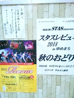 何となく年中行事になりつつある浅草ゆめまち劇場における『SKDスタス・レビュー』通いですが、芸術祭参加公演という事で、年間を通して一番力の入った『秋のおどり』であります。しかも今回は、本家SKDが浅草国際劇場から歌舞伎座に出演していた時代にハスキーな歌声で人気の高かった立原千穂さんがゲスト出演されるとの事なのでより楽しみです。