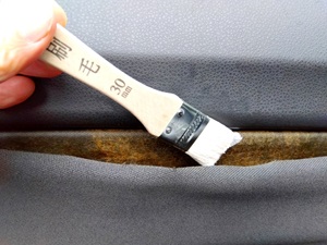 B剥がれた内張りを貼り付ける(ボンドは乾くと半透明になるので滲んできても気にしない)