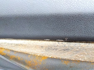運転席側はプリンがいつも外の景色を観るのにココに手(前足)を乗せるので、以前からジワジワと剥がれてきていたんですが、助手席側共々今夏に一気に剥がれました。はたしてどこまで直せるか、エイヤでやってみました。