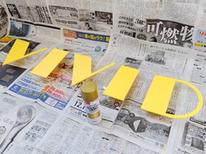 Y'sの初ライブ「VIVID」を少しでもオシャレに演出しようと思い、ステージに「VIVID」のロゴを装飾することを先生に提案したら「別にかまわないけど1000円以下で」と、なんともドライなOKとシビアな条件が出たので、見栄えがしつつコスパ最優先で作ってみました。