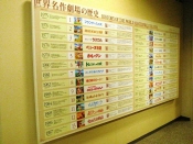 展示会場の入口で荷車を牽くパトラッシュが迎えてくれました。可愛い。中に進むと、左手には全26作品の紹介パネル、右手には世界名作劇場の歴史年表と26作品の舞台となった場所が世界地図上で案内されていました。アジアが舞台になっている名作は一つもないんですね。