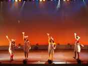 この演目は当初、私・落合・chicacoの3人で踊る予定でした。リズム劇場の開催前に振付もできあがり「これでひと安心」と思った頃、落合からオメデタイ報告がありました。とても喜ばしい思いと同時に「今からキャストしなおして、振付も覚えてもらって間に合う?どうしよう・・・」という思いが頭の中で交錯してめまいがしました。落合は「踊ります」と言ったのですが、もしものことがあったら大変!辞退してもらいました(結局、発表会ではフラメンコをテーマにした情熱的なタップを生徒さんたちと踊っていましたが無事でなによりでした(笑))。すぐに頭を切り替えてキャストを再選。本吉・石塚・実方を加え、振りを5人用に作り直しました。この3人には本当に大変な思いをさせました。私がリズム劇場に入ってしまうため振付を2回ぐらいで覚えてもらい、後はある朝は10時頃から、ある夜は23時頃までひたすら自主練の日々。まるで試合前のボクサーのように、私が見てもすごい練習量でした。リズム劇場が終わり私も加わりましたが、chicacoも含めたみんながすごく揃っていたにもかかわらず、リズム劇場漬けだった私が振りを忘れている!自分で付けた振りをみんなに教わり、なんとか本番を迎えました。