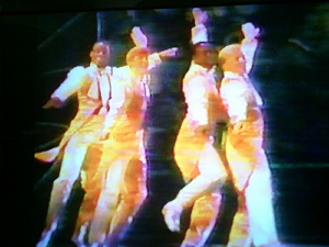 長くなるのでこの“スイング”ナンバーに限定すると、男性ダンサーズがブロードウエイ版7人に対して来日版4人。しかもフォーメーションは7人用のまま直してこなかった。