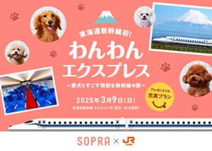 今年の3月に東京〜新大阪間の東海道新幹線「のぞみ」の貸し切り車両1両で実証実験「わんわんエクスプレス」が実施されました。この実験の最大トピックは「愛犬をケージから出せる」ことで、ワンコが快適に過ごせることと合わせて、一般乗客への迷惑やアレルギーへの配慮、安全性を検証することを目的に実施されました。