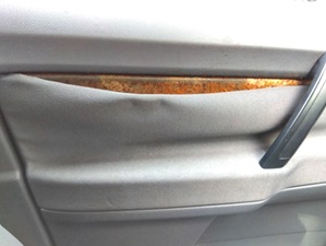 運転席側はプリンがいつも外の景色を観るのにココに手(前足)を乗せるので、以前からジワジワと剥がれてきていたんですが、助手席側共々今夏に一気に剥がれました。はたしてどこまで直せるか、エイヤでやってみました。
