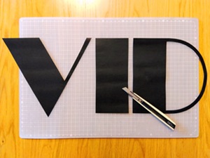 Aカラーボードに「VIVID」のスペル分をトレースしてカットする